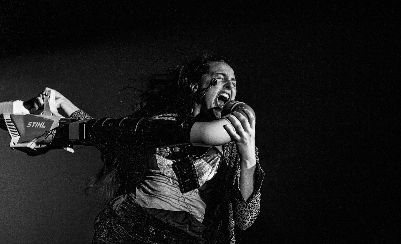Chanson à bulles, lancer de couteau dansé ou musique de braguette, Juli! nous embarque entre performances originales et délires improbables et transforme son tour de chant en un show