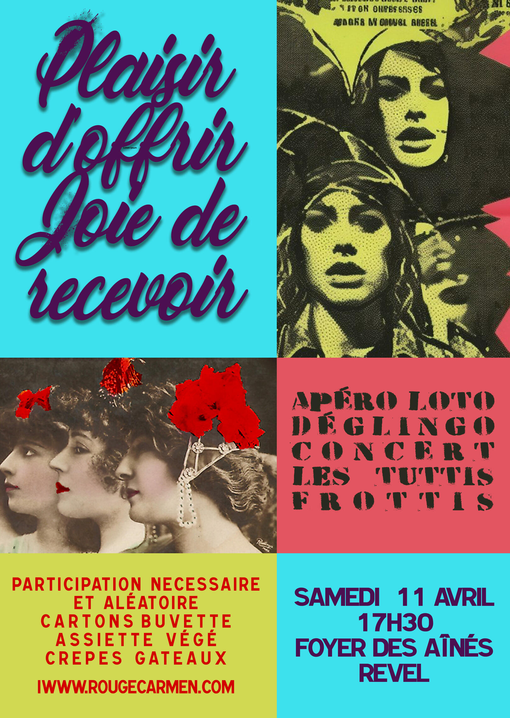 | PLAISIR D'OFFRIR, JOIE DE RECEVOIR ! | ROUGE CARMEN | 11/04/2026 à partir de 17h30 | Club des Aînés | Revel ( 31) |